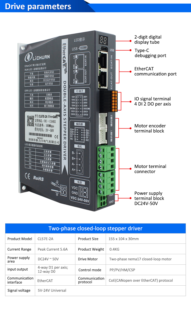 Kit Driver Motor Stepper Loop Tertutup EtherCAT 2Phase Nema24 2-Axis DC