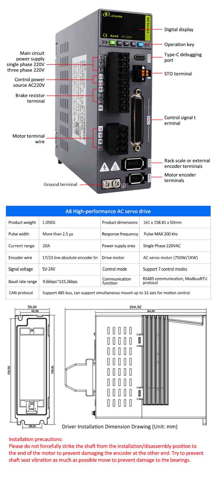 ItuKit Driver Motor Servo AC STO ABZ Lichuan A8 Akurasi Tinggimenggunakan driver servo AC berbasis prosesor sinyal digital (DSP), dikombinasikan dengan motor encoder ABZ sensitivitas tinggi.