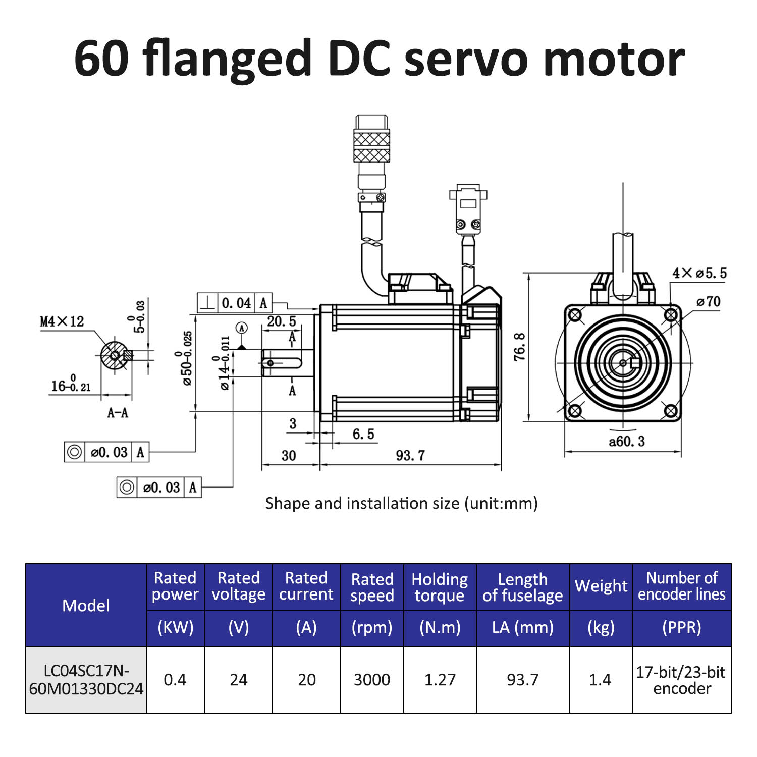 Pulse/RS485/CANopen/EtherCAT 40 FLANGED 100W Kit Driver Motor Servo DC Tegangan Rendah